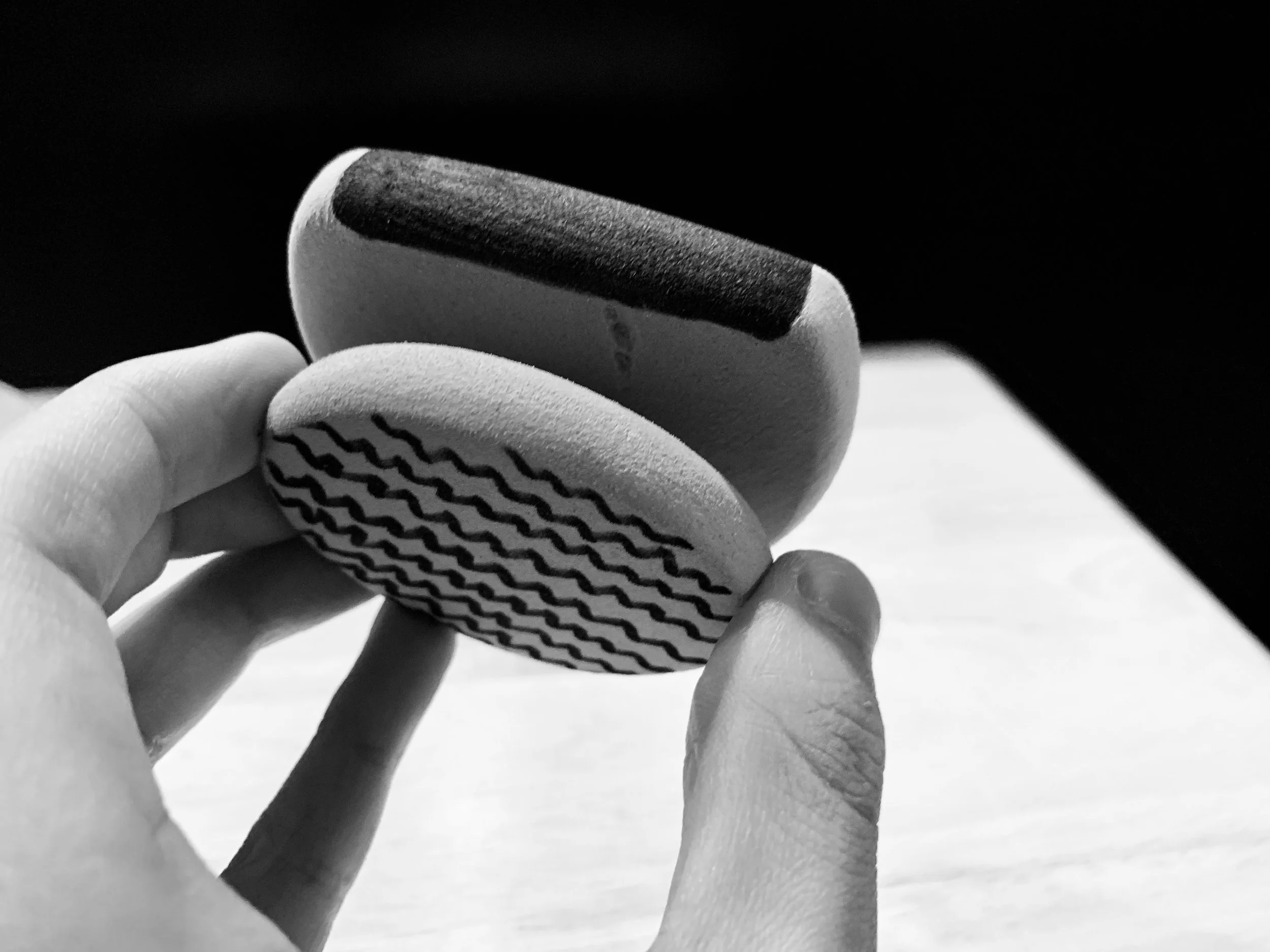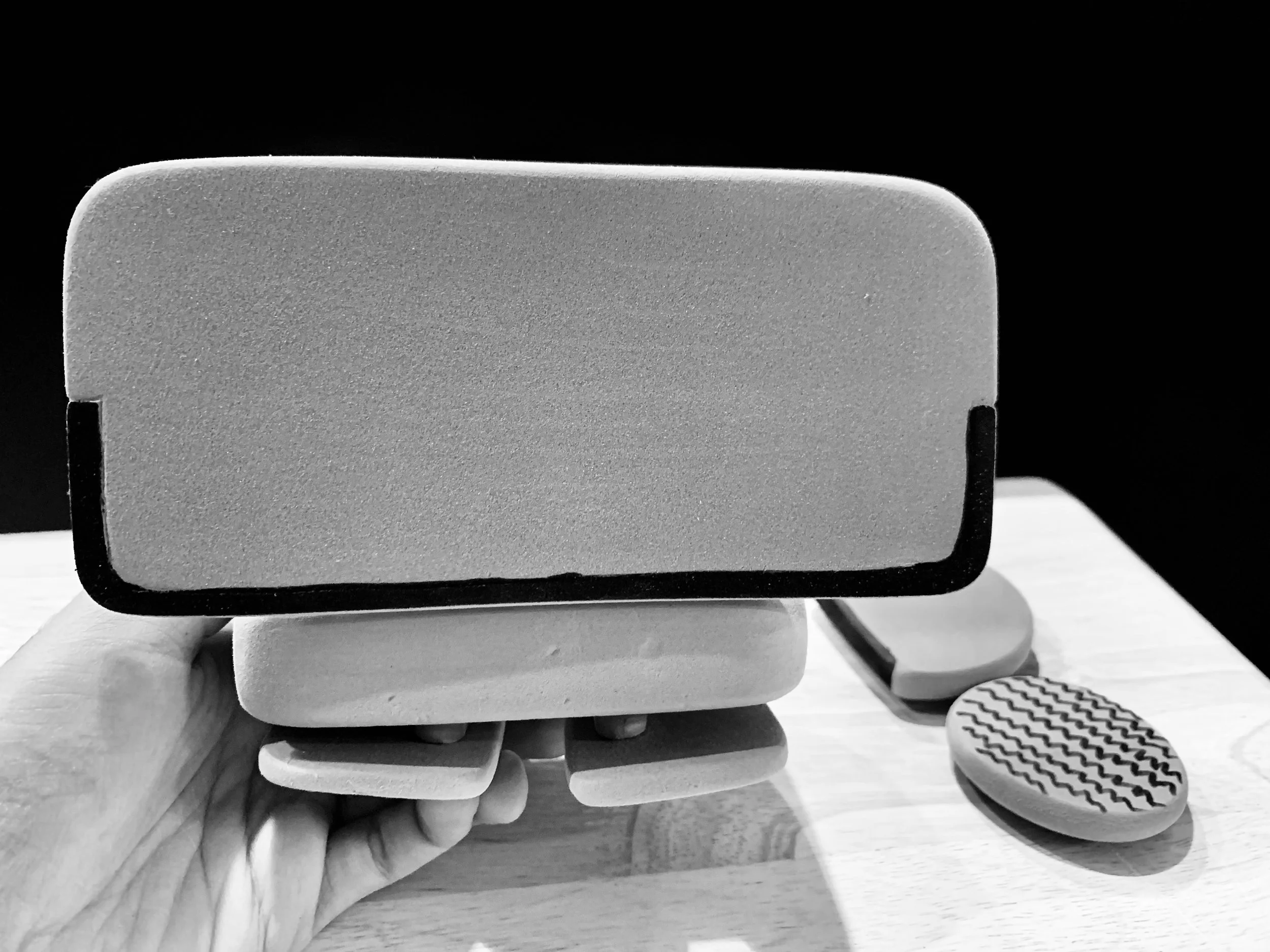 The rough models were made of foam to figure out the correct dimensions for a compact design.